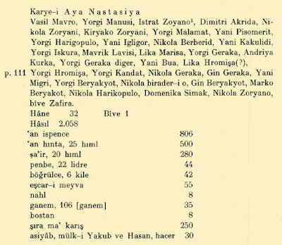 Η απογραφή αναφέρει επίσης παραγωγή σιταριού,κριθαριού, βαμβακιού και κρασιού. Αυτό σημαίνει καμπίσιες εκτάσεις.Η παραγωγή του βαμβακιού σημαίνει επίσης ότι εκτός απο τα μάλινα ρούχα που έφτιαχναν απο το μαλί των προβάτων έφτιαχναν και βαμβακερά ρούχα.